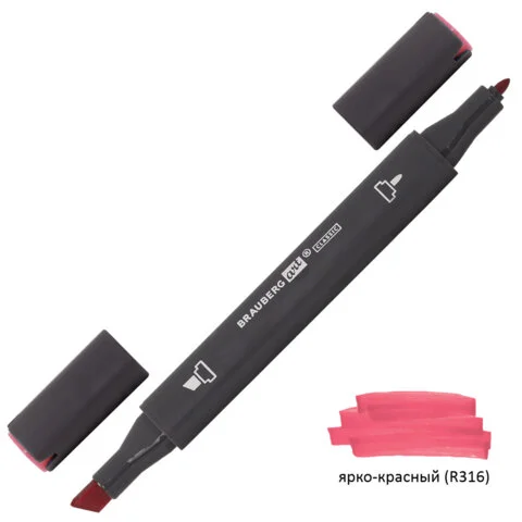 Маркер для скетчинга двусторонний 1 мм - 6 мм BRAUBERG ART CLASSIC, ЯРКО-КРАСНЫЙ (R316), 151798