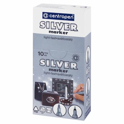 Маркер для стекла и керамики Centropen серебряный, 1мм, пулевидный наконечник, декоративный