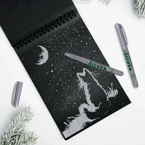 Универсальный перманентный, серебряный маркер. Эргономичная зона обхвата. Устойчив на пористых поверхностях, идеально подходит для декорирования. Светостойкие чернила. Пулевидный наконечник, толщина линии 1 мм. Хранить в горизонтальном положении.