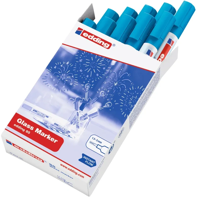 Маркер для стеклянных досок EDDING E-95/010 голубой 1,5-3мм круг.наконечник