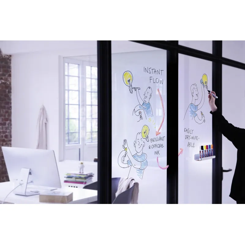 Маркер для стеклянных досок в пластиковом корпусе. Конусообразный наконечник обеспечивает толщину линии от 1.5 до 3 мм. Цвет — голубой.