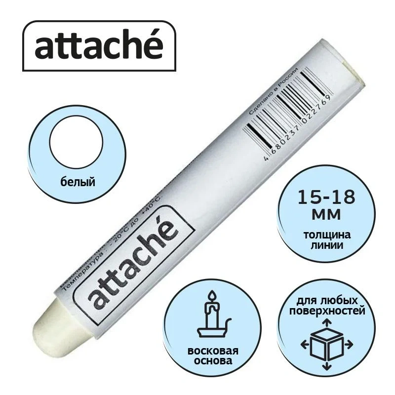 Маркер-краска Attache белый, 15-18мм, круглый наконечник, восковая основа