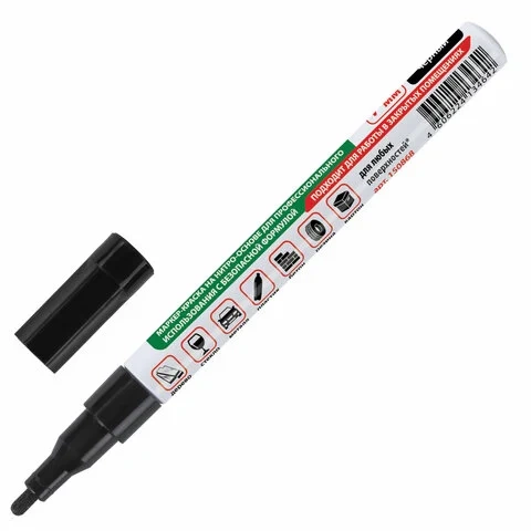 Маркер-краска Brauberg черный, 1-2мм, пулевидный наконечник, нитро-основа