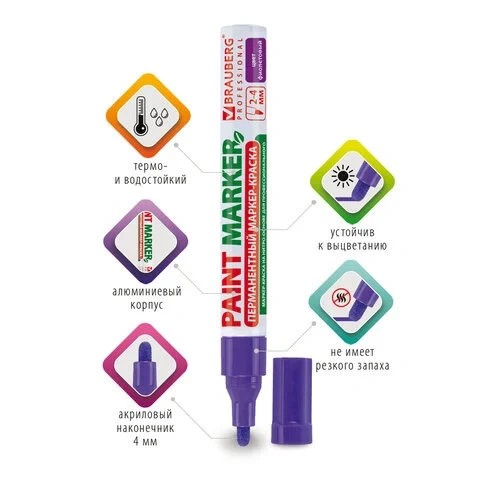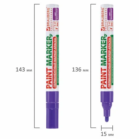 Маркер-краска Brauberg фиолетовый, 2-4мм, пулевидный наконечник, нитро-основа
