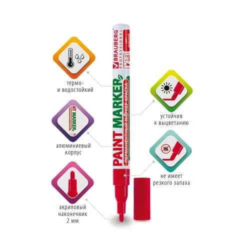 Маркер-краска Brauberg красный, 1-2мм, пулевидный наконечник, нитро-основа