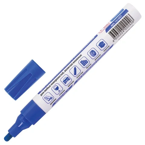 Маркер-краска Brauberg Paint Marker синий, 4мм, нитро-основа, алюминиевый корпус