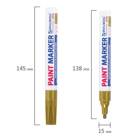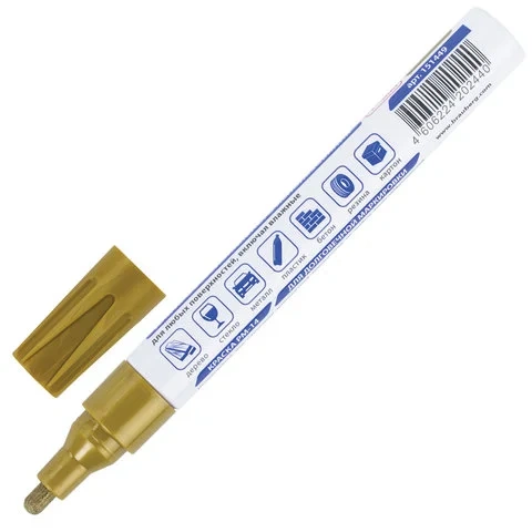 Маркер-краска Brauberg Paint Marker золотой, 4мм, нитро-основа, алюминиевый корпус