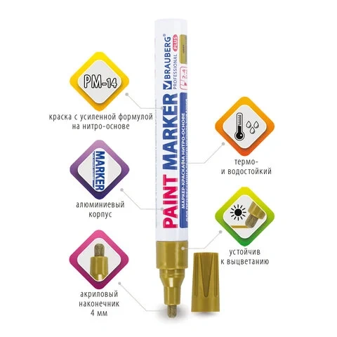 Маркер-краска BRAUBERG с усиленной формулой незаменим для промышленной маркеровки материалов и изделий. Покупайте с радостью в нашем интернет-магазине!