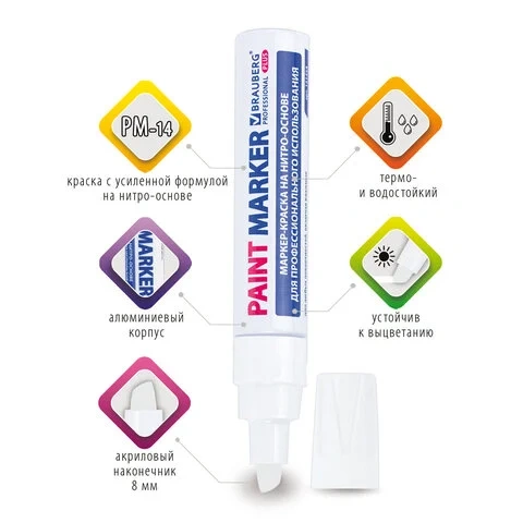 Маркер-краска BRAUBERG с усиленной формулой незаменим для промышленной маркеровки материалов и изделий. Покупайте с радостью в нашем интернет-магазине!