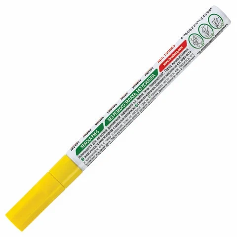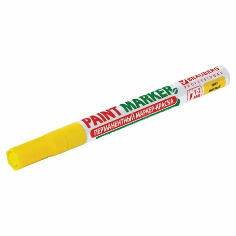 Маркер-краска Brauberg желтый, 1-2мм, пулевидный наконечник, нитро-основа