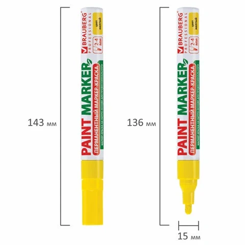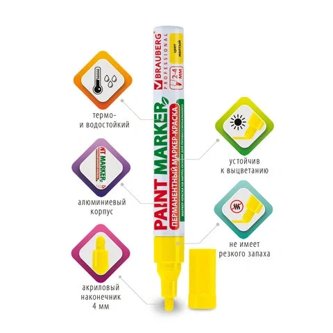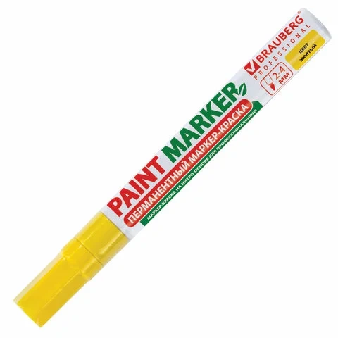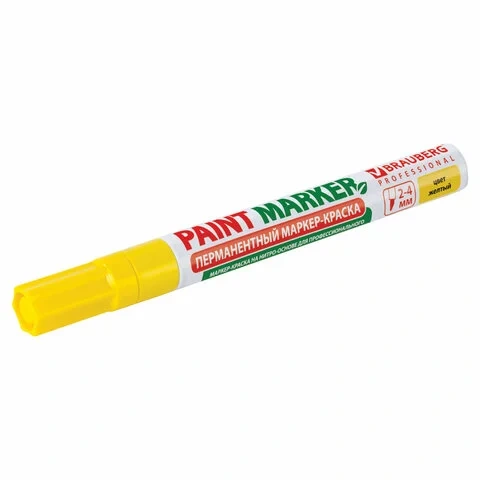 Маркер-краска Brauberg желтый, 2-4мм, пулевидный наконечник, нитро-основа