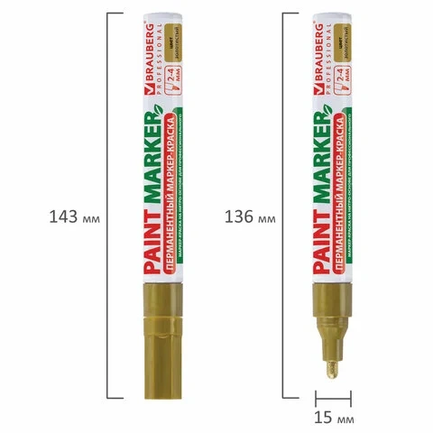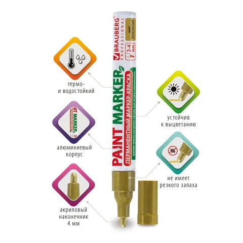 Маркер-краска Brauberg золотой, 2-4мм, пулевидный наконечник, нитро-основа