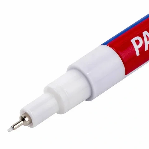 Высококачественные чернила белого цвета с лаковым эффектом идеально подходят для нанесения долговечной маркировки на любые поверхности. Благодаря усиленной формуле чернил краска ложится ровным слоем, полностью закрашивая поверхность. С помощью игольчатого прочного наконечника, выполненного из полиацетали с шириной линии письма 1 мм, можно легко наносить тонкие линии. Быстросохнущие чернила предотвращают смазывание в процессе маркировки. После высыхания надписи становятся термо- и водостойкими, а также устойчивыми к выцветанию и механическому истиранию. Отлично подходит для маскировки бытовых дефектов, таких как царапины и сколы. Надежный помповый механизм подачи чернил предотвращает вытекание и разбрызгивание в процессе использования, а также преждевременное высыхание. Корпус маркера выполнен из алюминия, внутри находятся 2 металлических шарика для взбалтывания краски. Цвет колпачка соответствует цвету чернил.