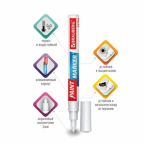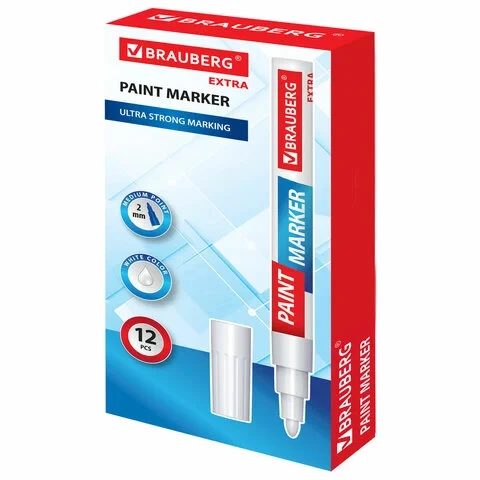Маркер-краска Brauberg белый, 2мм, усиленная нитро-основа