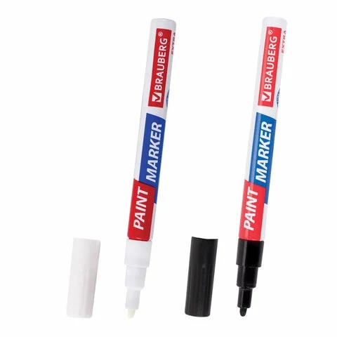 Маркер-краска Brauberg белый/черный набор 2 цвета, 2мм, усиленная нитро-основа