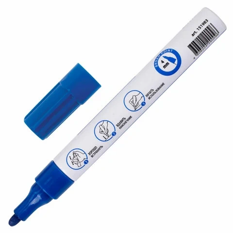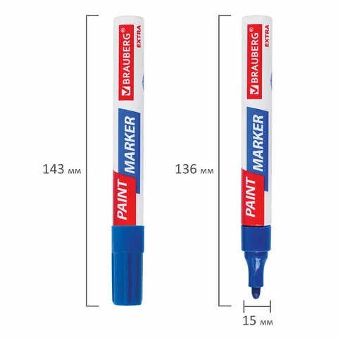 Высококачественные чернила синего цвета с лаковым эффектом идеально подходят для нанесения долговечной маркировки на любые поверхности. Благодаря усиленной формуле чернил краска ложится ровным слоем, полностью закрашивая поверхность. С помощью круглого прочного наконечника, выполненного из пористого акрила с шириной линии письма 4 мм, можно легко наносить широкие линии. Быстросохнущие чернила предотвращают смазывание в процессе маркировки. После высыхания надписи становятся термо- и водостойкими, а также устойчивыми к выцветанию и механическому истиранию. Отлично подходит для маскировки бытовых дефектов, таких как царапины и сколы. Надежный помповый механизм подачи чернил предотвращает вытекание и разбрызгивание в процессе использования, а также преждевременное высыхание. Корпус маркера выполнен из алюминия, внутри находятся 2 металлических шарика для взбалтывания краски. Цвет колпачка соответствует цвету чернил.