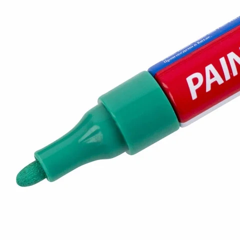 Высококачественные чернила зеленого цвета с лаковым эффектом идеально подходят для нанесения долговечной маркировки на любые поверхности. Благодаря усиленной формуле чернил краска ложится ровным слоем, полностью закрашивая поверхность. С помощью круглого прочного наконечника, выполненного из пористого акрила с шириной линии письма 4 мм, можно легко наносить широкие линии. Быстросохнущие чернила предотвращают смазывание в процессе маркировки. После высыхания надписи становятся термо- и водостойкими, а также устойчивыми к выцветанию и механическому истиранию. Отлично подходит для маскировки бытовых дефектов, таких как царапины и сколы. Надежный помповый механизм подачи чернил предотвращает вытекание и разбрызгивание в процессе использования, а также преждевременное высыхание. Корпус маркера выполнен из алюминия, внутри находятся 2 металлических шарика для взбалтывания краски. Цвет колпачка соответствует цвету чернил.
