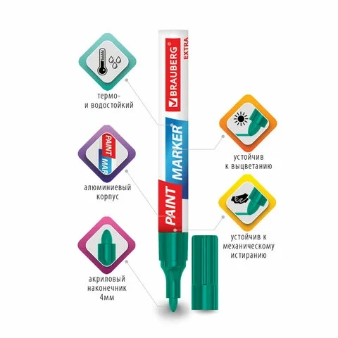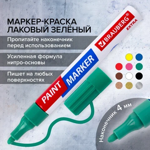 Маркер-краска Brauberg Extra зеленый, 4мм, усиленная нитро-основа