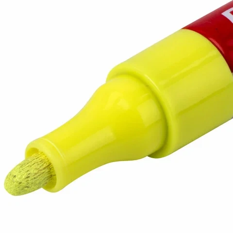 Высококачественные чернила желтого цвета с лаковым эффектом идеально подходят для нанесения долговечной маркировки на любые поверхности. Благодаря усиленной формуле чернил краска ложится ровным слоем, полностью закрашивая поверхность. С помощью круглого прочного наконечника, выполненного из пористого акрила с шириной линии письма 4 мм, можно легко наносить широкие линии. Быстросохнущие чернила предотвращают смазывание в процессе маркировки. После высыхания надписи становятся термо- и водостойкими, а также устойчивыми к выцветанию и механическому истиранию. Отлично подходит для маскировки бытовых дефектов, таких как царапины и сколы. Надежный помповый механизм подачи чернил предотвращает вытекание и разбрызгивание в процессе использования, а также преждевременное высыхание. Корпус маркера выполнен из алюминия, внутри находятся 2 металлических шарика для взбалтывания краски. Цвет колпачка соответствует цвету чернил.