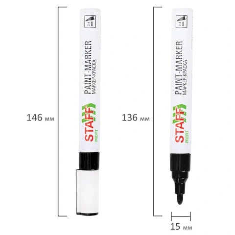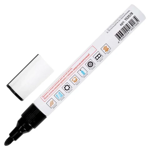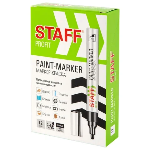 Маркер-краска лаковый (paint marker) 2-4 мм, ЧЕРНЫЙ, НИТРО-ОСНОВА, STAFF PROFIT, для любых поверхнос