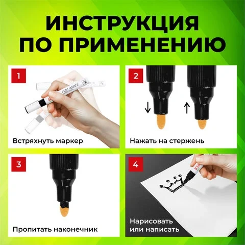Высококачественные чернила черного цвета с лаковым эффектом идеально подходят для нанесения долговечной маркировки на любые поверхности. Благодаря усиленной формуле чернил краска ложится ровным слоем, полностью закрашивая поверхность. С помощью круглого прочного наконечника, выполненного из пористого акрила с шириной линии письма 2-4 мм, можно легко наносить широкие линии равномерным и однородным слоем.