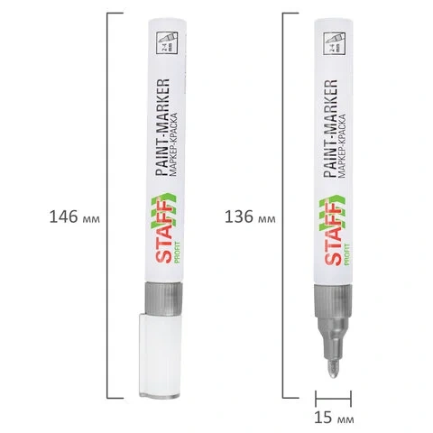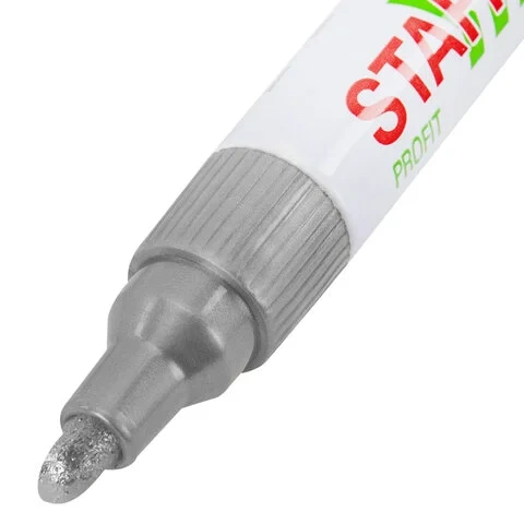 Маркер-краска лаковый (paint marker) 2-4 мм, СЕРЕБРИСТЫЙ, НИТРО-ОСНОВА, STAFF PROFIT, для любых пове