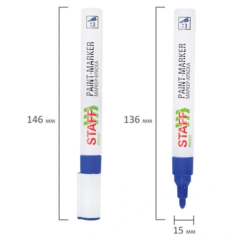 Маркер-краска лаковый (paint marker) 2-4 мм, СИНИЙ, НИТРО-ОСНОВА, STAFF PROFIT, для любых поверхност