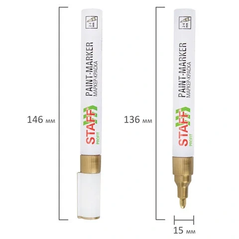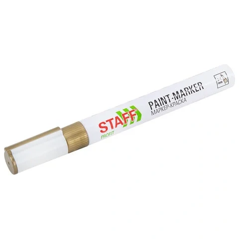 Маркер-краска лаковый (paint marker) 2-4 мм, ЗОЛОТИСТЫЙ, НИТРО-ОСНОВА, STAFF PROFIT, для любых повер