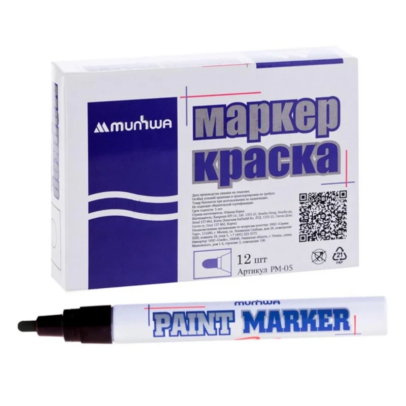 Маркер промышленный лаковый MunHwa PM-01 чёрный 2-4 мм