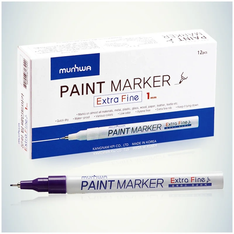 Маркер-краска MunHwa Extra Fine предназначен для нанесения деликатной маркировки на гладкие поверхности (металл, пластмасса, резина, кожа и пр.). Отлично подходит для маркировки фото пленок и рентгеновских снимков, имеет широкое применения в дизайне, декорировании и оформлении.