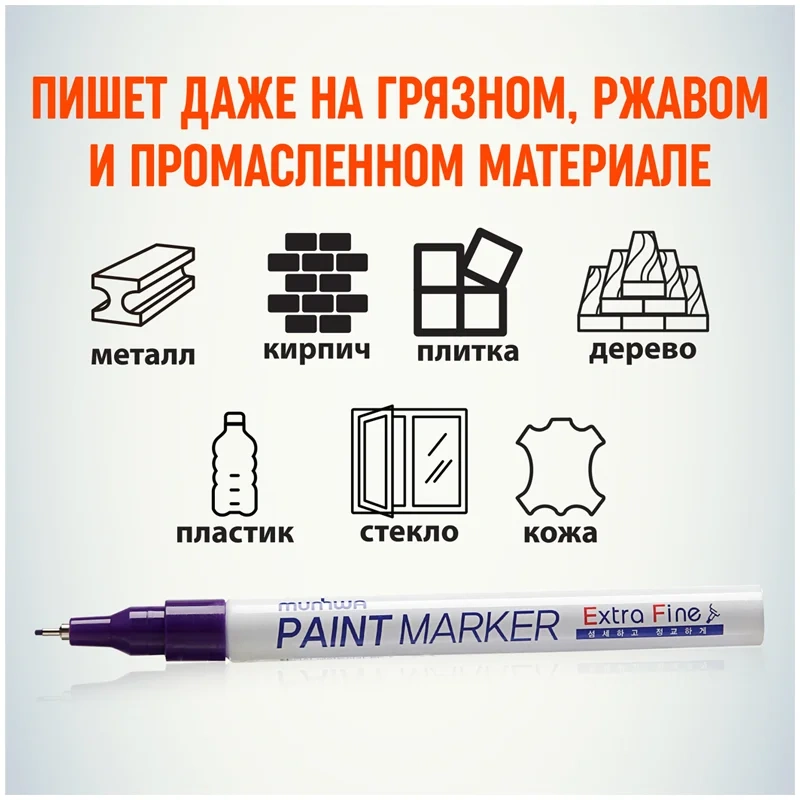 Маркер-краска Munhwa Extra Fine Paint Marker фиолетовый, 1мм, пулевидный наконечник, нитро-основа