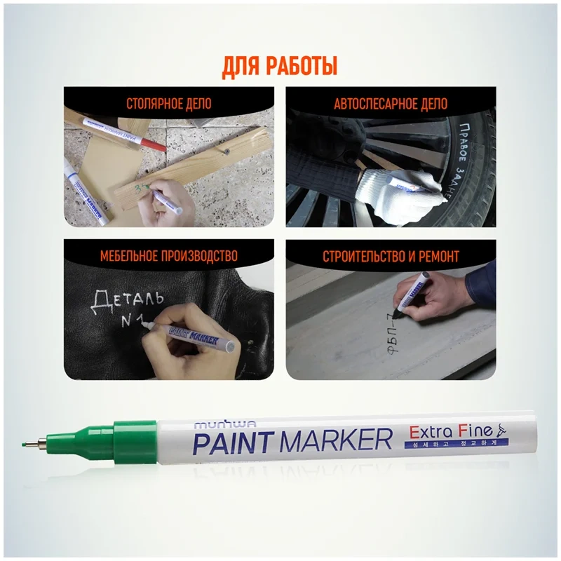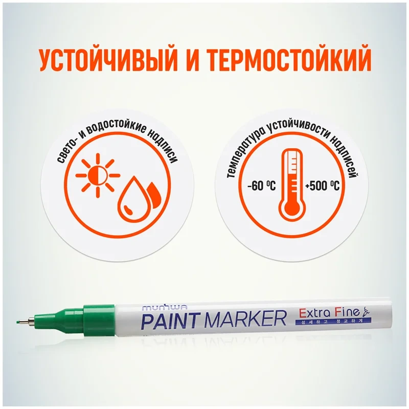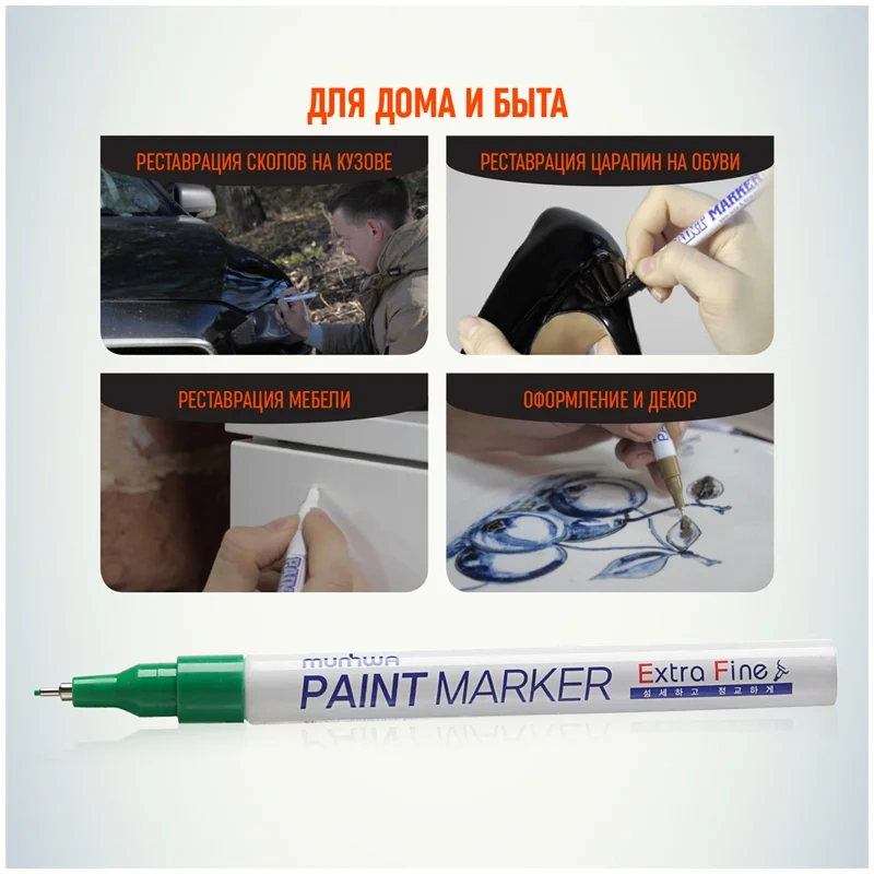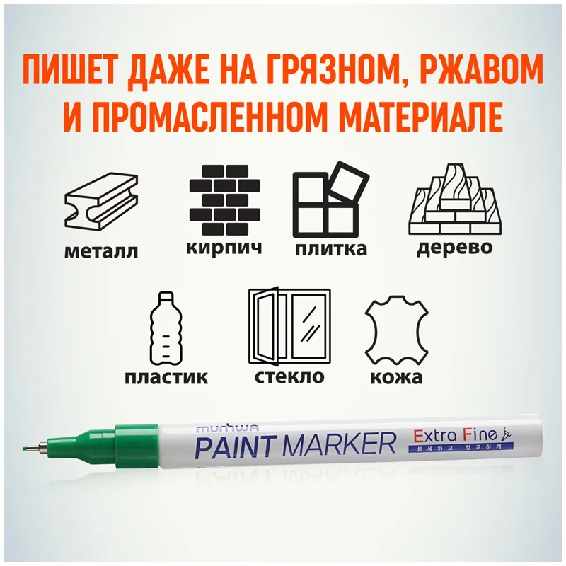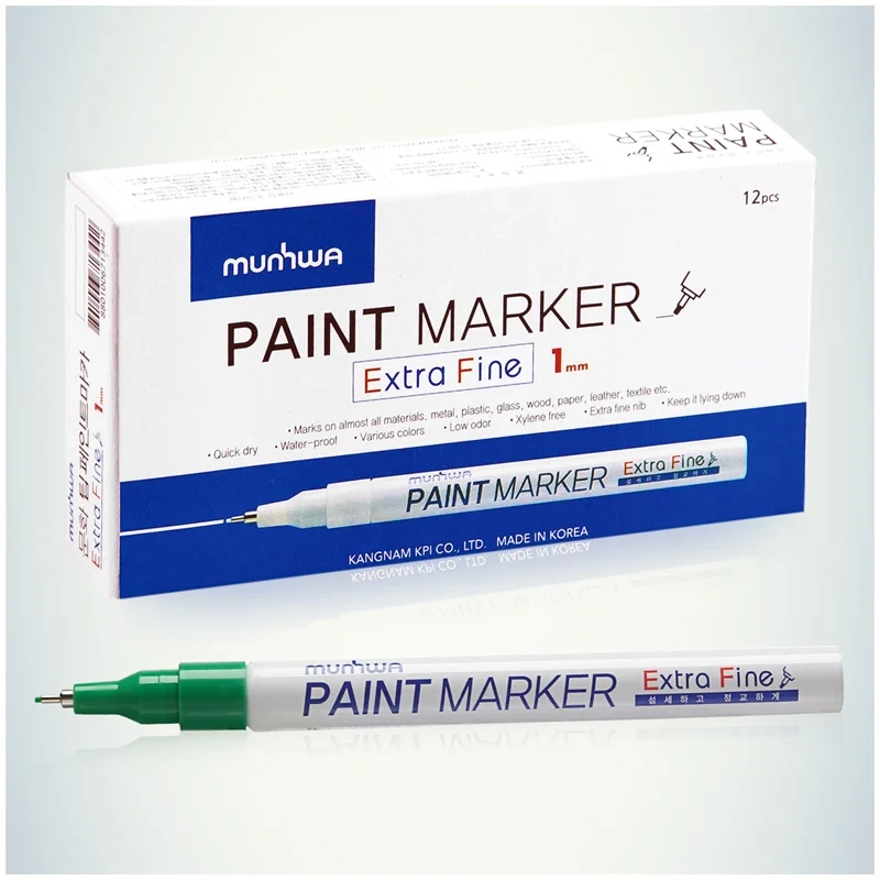 Маркер-краска Munhwa Extra Fine Paint Marker зеленый, 1мм, пулевидный наконечник, нитро-основа