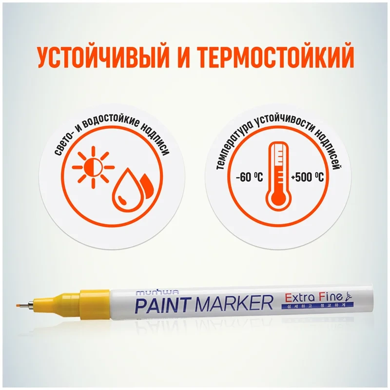 Маркер-краска Munhwa Extra Fine Paint Marker желтый, 1мм, пулевидный наконечник, нитро-основа