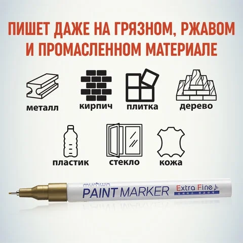 Маркер-краска Munhwa Extra Fine Paint Marker золотой, 1мм, пулевидный наконечник, нитро-основа