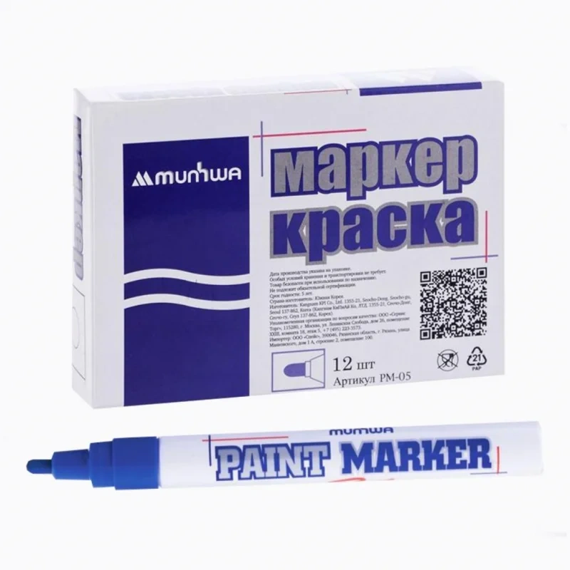 Маркер-краска Munhwa синий, 4 мм, пулевидный наконечник, нитро-основа