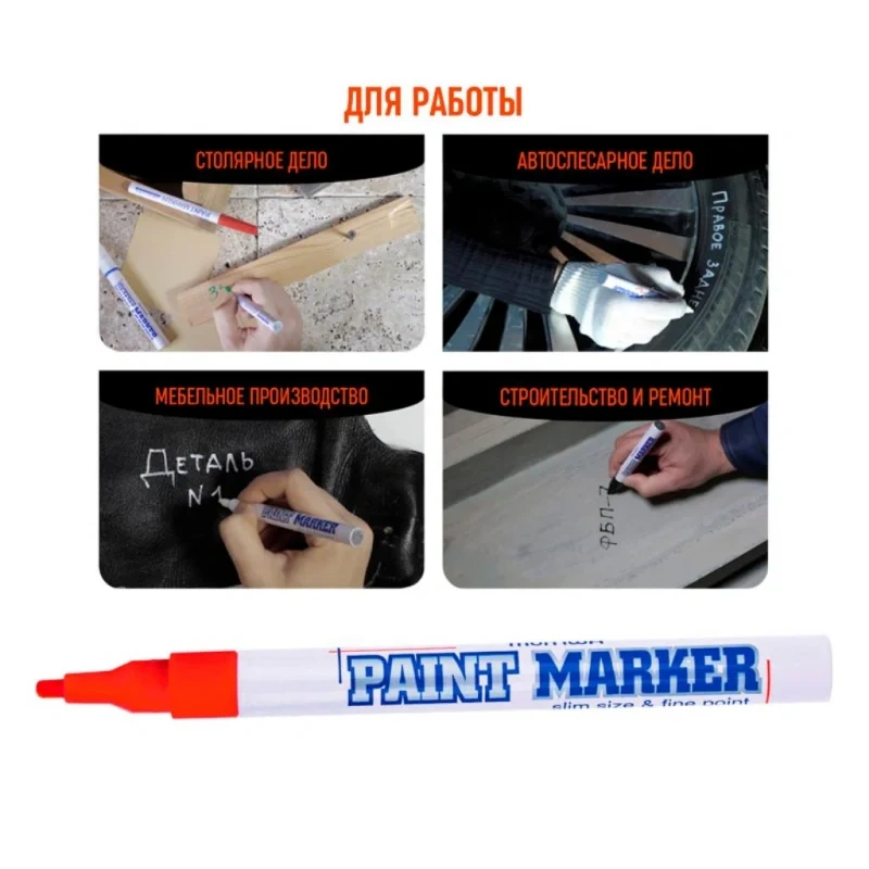 Маркер красного цвета — это профессиональный лаковый маркер с нитроосновой, предназначенный для использования на различных типах поверхностей, включая металл, дерево, резину, бетон, стекло, кожу, кирпич и камень. Этот маркер идеально подходит для создания долговечных надписей, рисунков и для реставрации дефектов на бытовой технике, обуви, кузовах автомобилей и каменных плитах. Его чернила обладают отличной укрывистостью, сохнут быстро, обеспечивая равномерный и однородный слой на поверхности.