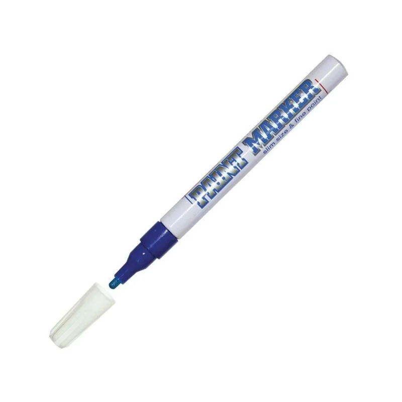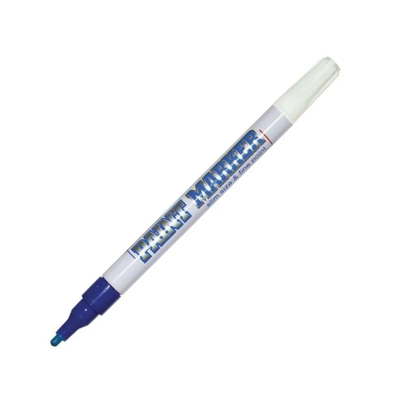 Маркер с синими чернилами — это лаковый промышленный маркер, предназначенный для использования на различных поверхностях, таких как металл, дерево, пластик, стекло, камень, резина, кирпич и кожа. Его краска устойчива к воздействию морозов, не выгорает на солнце и подходит для применения на загрязнённых поверхностях, включая те, которые могут содержать масла. Это делает маркер идеальным для использования в условиях с повышенным загрязнением.