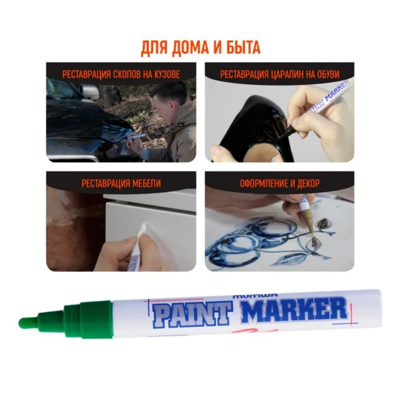 Маркер будет полезен не только для профессионалов, но и для использования в домашних условиях. Он легко наносит краску на загрязнённые поверхности, что делает его незаменимым в ремонте и реставрации.