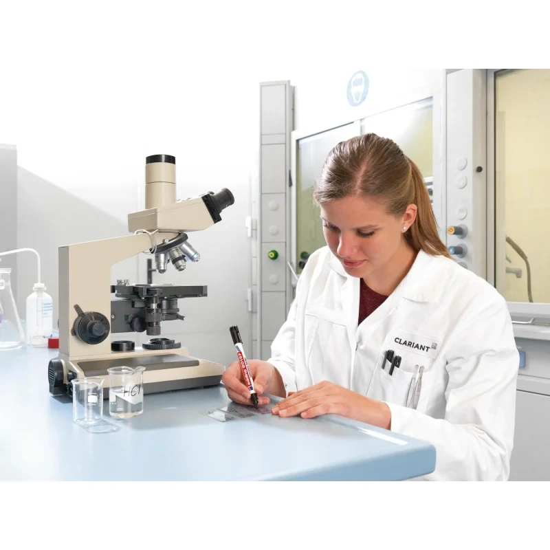 Маркер с чёрными спиртовыми чернилами предназначен для использования в лабораториях, медицинских учреждениях и научных исследованиях. Он идеально подходит для маркировки гладких и прозрачных поверхностей, таких как предметные стекла, реакционные сосуды, лабораторная посуда и бирки. Чернила обеспечивают чёткие и долговечные надписи, которые перманентны на пластике, а на стекле могут быть удалены с помощью спиртосодержащих чистящих средств.