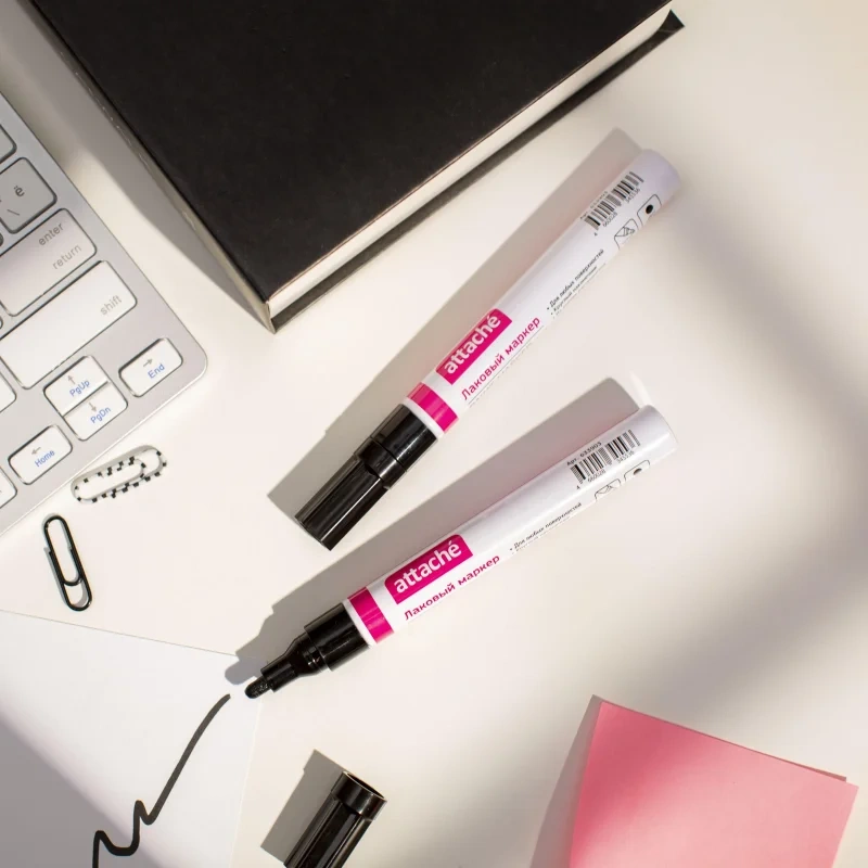 Маркер с чёрными лакирующими чернилами предназначен для непрозрачной маркировки различных материалов, таких как стекло, пластик, металл, дерево, резина и камень. Он особенно эффективен при работе с тёмными и прозрачными поверхностями, обеспечивая чёткие и яркие надписи с лакирующим эффектом. Чернила водостойкие, быстро сохнут и обладают хорошей устойчивостью к воздействию окружающей среды, включая изменения температуры и погодные условия.