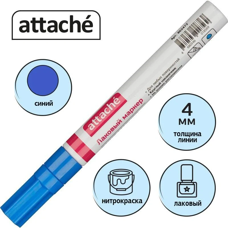 Маркер лаковый Attache синий, 4мм, круглый наконечник