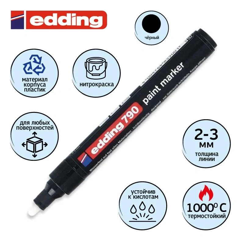 Маркер лаковый Edding 790 черный, 2-3мм, круглый наконечник, универсальный
