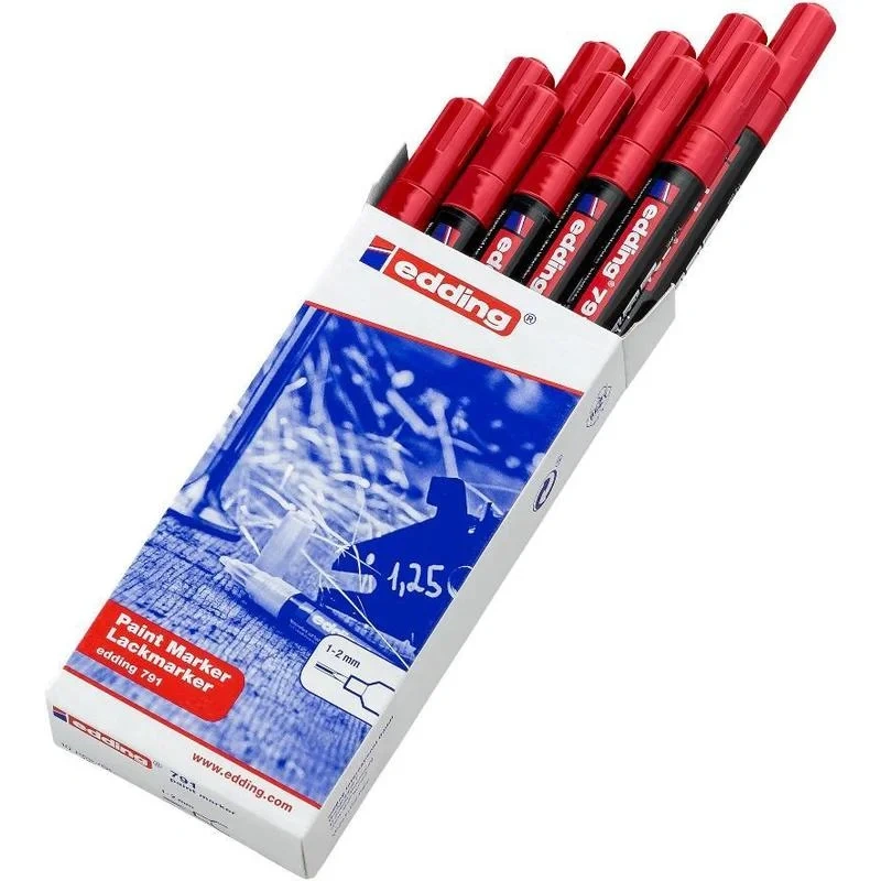 Маркер лаковый Edding 791 красный, 1-2мм, круглый наконечник, универсальный