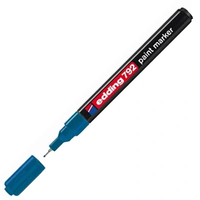 Универсальный маркер Edding 792 используется для промышленной непрозрачной маркировки практически всех материалов, например, стекла, пластика, дерева или металла. Может применяется для письма на жирных, пыльных, грязных поверхностях в индустриальных условиях. Лаковый маркер устойчив к кислотам, растворителям, механическому истиранию, свету. Высококонцентрированный пигмент хорошо ложится на гладкие и шероховатые поверхности. Непрозрачные лаковые чернила позволяют делать хорошо заметные надписи густым плотным слоем даже на темных или прозрачных поверхностях. Экономичный корпус промышленного маркера изготовлен из пластика. Маркер Edding E 792 имеет тонкий металлический наконечник. Благодаря тонкому наконечнику маркером может наносится маркировка на небольшие элементы и поверхности. Толщина линии - 0,8 мм. Поток чернил регулируется клапаном. Чернила маркера с лакирующим эффектом на основе нитрокраски. Водостойкий, быстро сохнет. Термостойкость надписи до 1000 градусов по Цельсию. Надписи цветами 05-010, 049 также видимы до 1000 С. Термостойскость надписей, выполненных остальными цветами до 400 градусов по Цельсию. Маркер Edding E 792 хорошо зарекомендовал себя в работе при перепадах температур от -15 до 30. Промышленный лаковый маркер Edding Е-792 универсален. Используется, например, при нанесении меток на разнородные материалы. При маркировке изделий из резины, пластика, стекла, металла, кабеля, проводов, при нанесении маркировки на товары достаточно одного маркера - Edding E 792. Идеально подходит для маркировки грузов, приборостроения, технологической маркировки. Кроме того, маркер Edding E 792, благодаря разнообразной палитре цветов и свойствам красящего вещества, широко используется для декоративных и оформительских работ дизайнерами. используется в витражных работах, росписи по дереву и керамике, для других интерьерных работ. Инструкция по применению маркера: 1. Перед использованием хорошенько встряхнуть с закрытым колпачком. 2. Снимите колпачок, прижмите наконечник к поверхности, надавите и удерживайте пока не проступит краска. 3. Применять после того как убедитесь, что вытекает исходный цвет. Предостережения: плотно закрывайте колпачок после применения, держать маркер вдали от огня и прямых солнечных лучей.