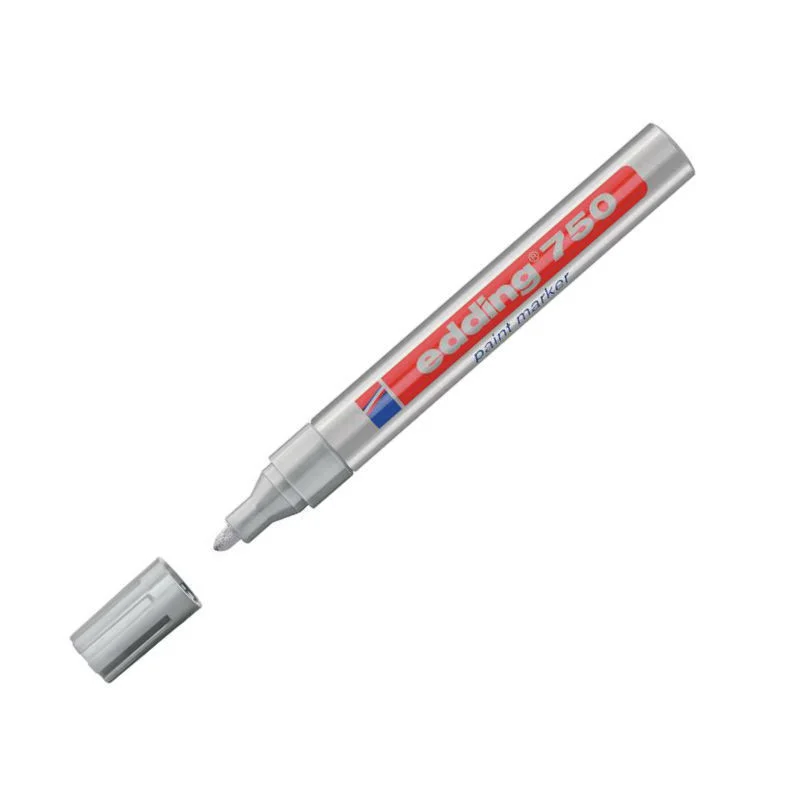 Маркер лаковый перманентный Edding 750 серебристый, 2-4мм, круглый наконечник, универсальный, лаковый, алюминиевый корпус