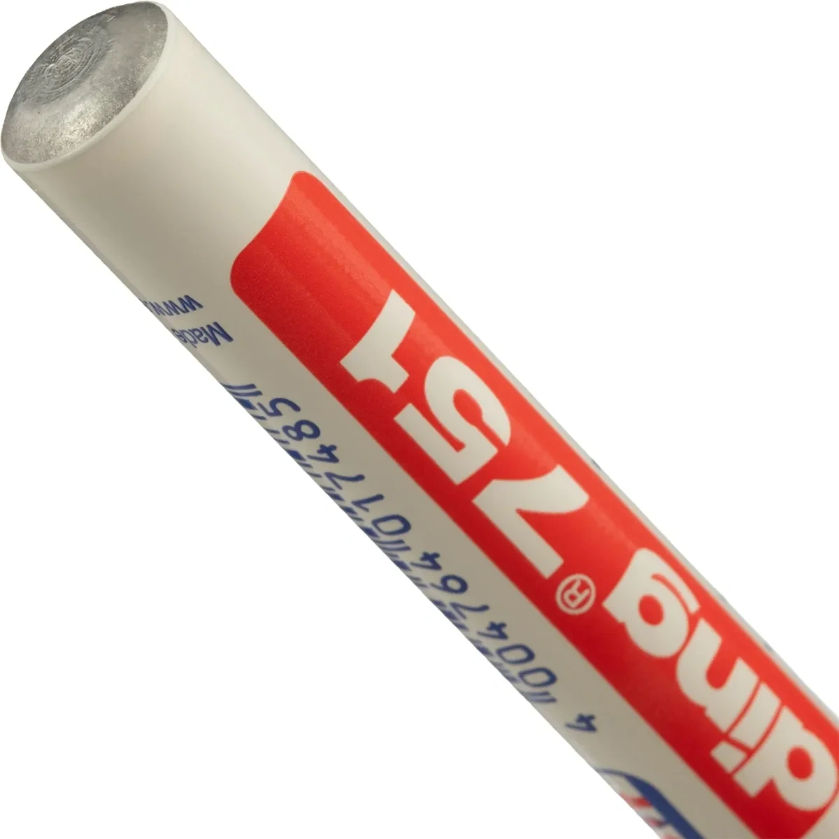 Универсальный маркер Edding 751 используется для промышленной непрозрачной маркировки практически всех материалов, например, стекла, пластика, дерева или металла. Может применяется для письма на жирных, пыльных, грязных поверхностях в индустриальных условиях. Лаковый маркер устойчив к кислотам, растворителям, механическому истиранию, свету. Высококонцентрированный пигмент хорошо ложится на гладкие и шероховатые поверхности. Не содержит толуола и ксилола. Специальные структуры, введенные в состав маркера Edding E 751, растворяют масляную пленку на поверхности письма, что дает яркую устойчивую надпись. Непрозрачные лаковые чернила позволяют делать хорошо заметные надписи густым плотным слоем даже на темных поверхностях. Корпус промышленного маркера изготовлен из алюминия. Маркер Edding E 751 имеет упроченный круглый (пулевидный) наконечник. Наконечник маркера может быть заменен по мере истирания. Благодаря тонкому наконечнику маркером может наносится маркировка на небольшие элементы и поверхности. Толщина линии - 1-2 мм. Поток чернил регулируется клапаном. Чернила маркера с лакирующим эффектом на основе нитрокраски. Водостойкий, быстро сохнет. Термостойкость надписи до 400 градусов по Цельсию. А надписи цветами 05-010, 049, 054 хорошо видимы до 1000 С. Маркер Edding E 751 хорошо зарекомендовал себя в работе при перепадах температур от -15 до 30. Промышленный лаковый маркер Edding Е-751 универсален. Используется, например, при нанесении меток на разнородные материалы. При маркировке изделий из резины, пластика, стекла, металла, кабеля, проводов, при нанесении маркировки на товары достаточно одного маркера - Edding E 751. Идеально подходит для маркировки грузов, приборостроения, технологической маркировки. Кроме того, маркер Edding E 751, благодаря разнообразной палитре цветов и свойствам красящего вещества, широко используется для декоративных и оформительских работ дизайнерами. используется в витражных работах, росписи по дереву и керамике, для других интерьерных работ. Инструкция по применению маркера: 1. Перед использованием хорошенько встряхнуть с закрытым колпачком. 2. Снимите колпачок, прижмите наконечник к поверхности, надавите и удерживайте пока не проступит краска. 3. Применять после того как убедитесь, что вытекает исходный цвет. Предостережение: плотно закрывайте колпачок после применения, держать маркер вдали от огня и прямых солнечных лучей.