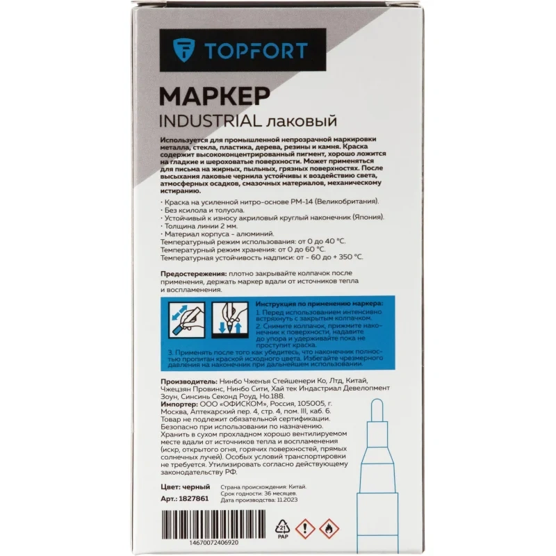 Маркер лаковый TOPFORT Industrial 2 мм черный