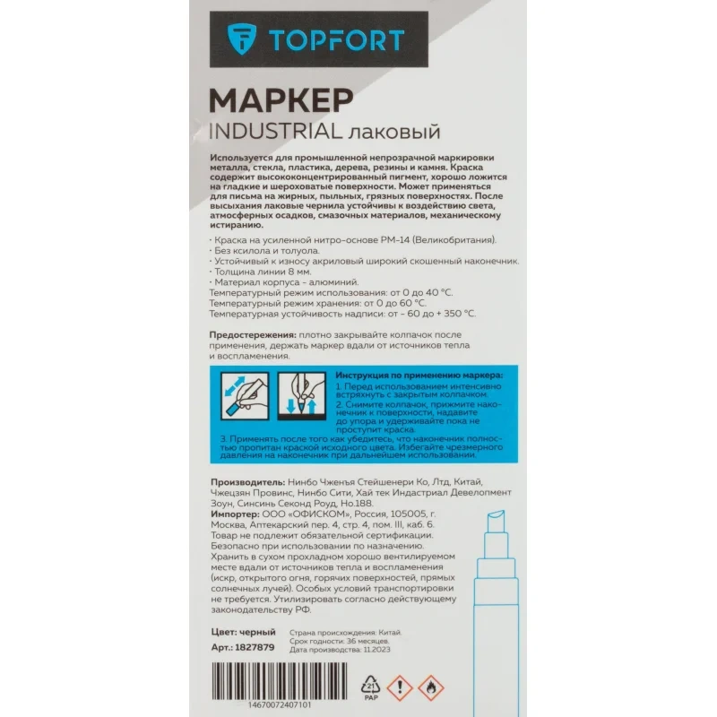 Маркер лаковый TOPFORT Industrial 8 мм черный