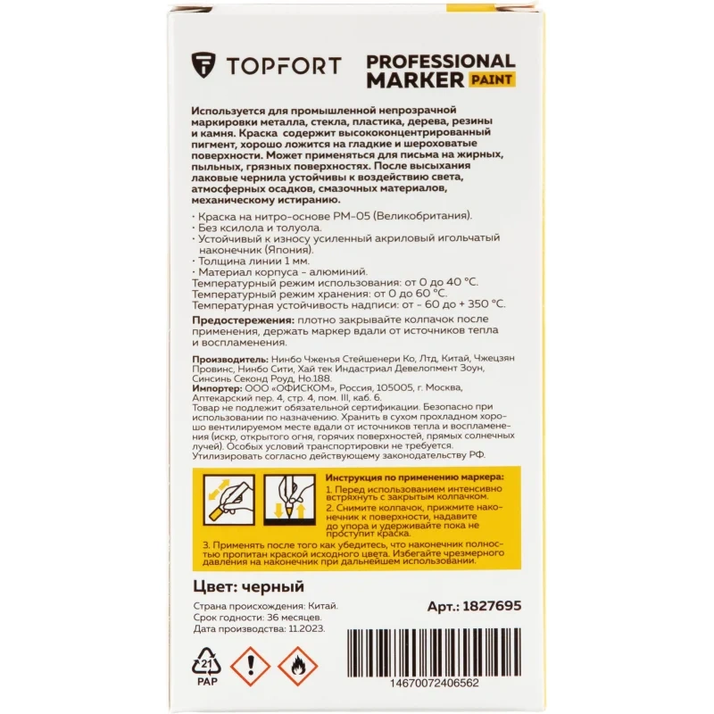 Маркер промышленный лаковый Topfort ZP1103 чёрный 1 мм (1827695)