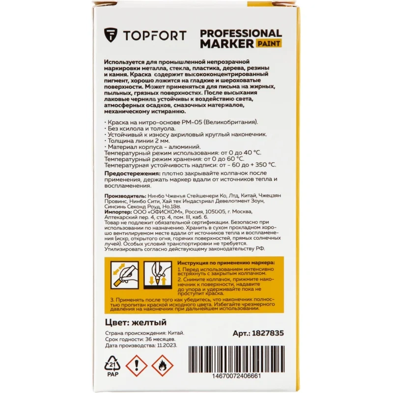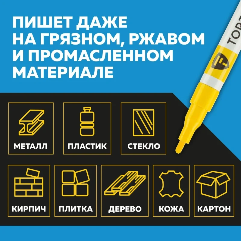 Маркер промышленный лаковый Topfort ZP1101 жёлтый 2 мм (1827835)